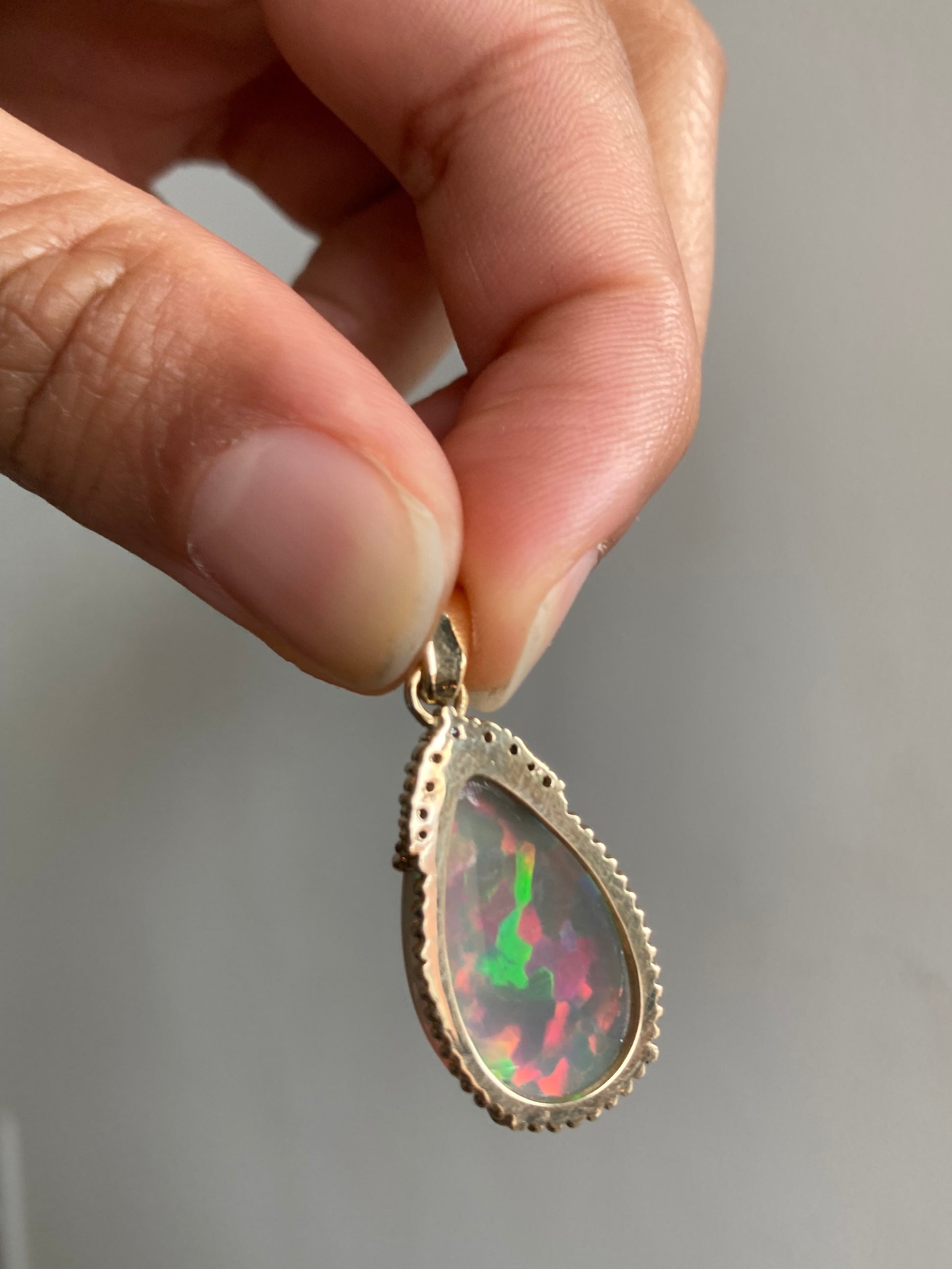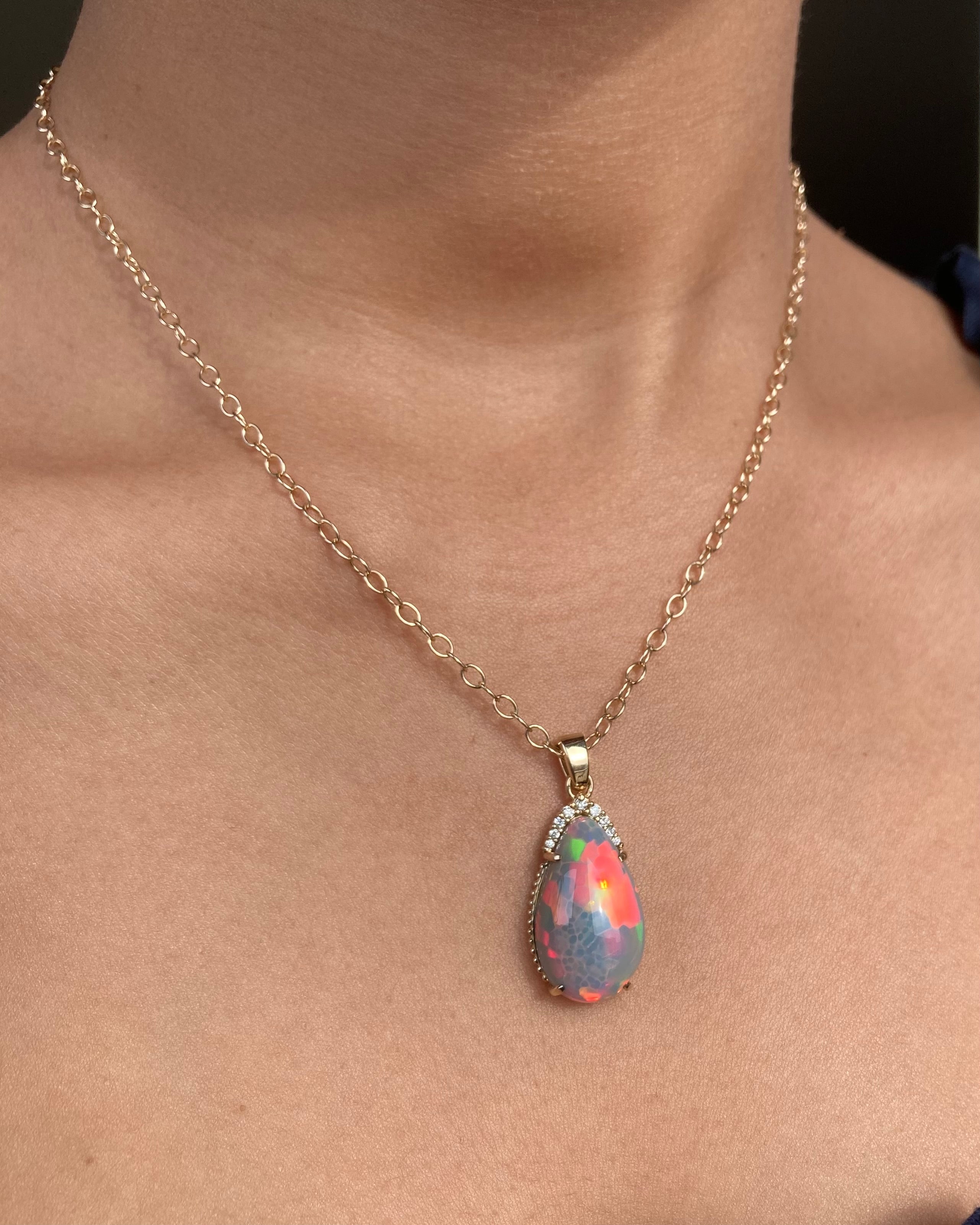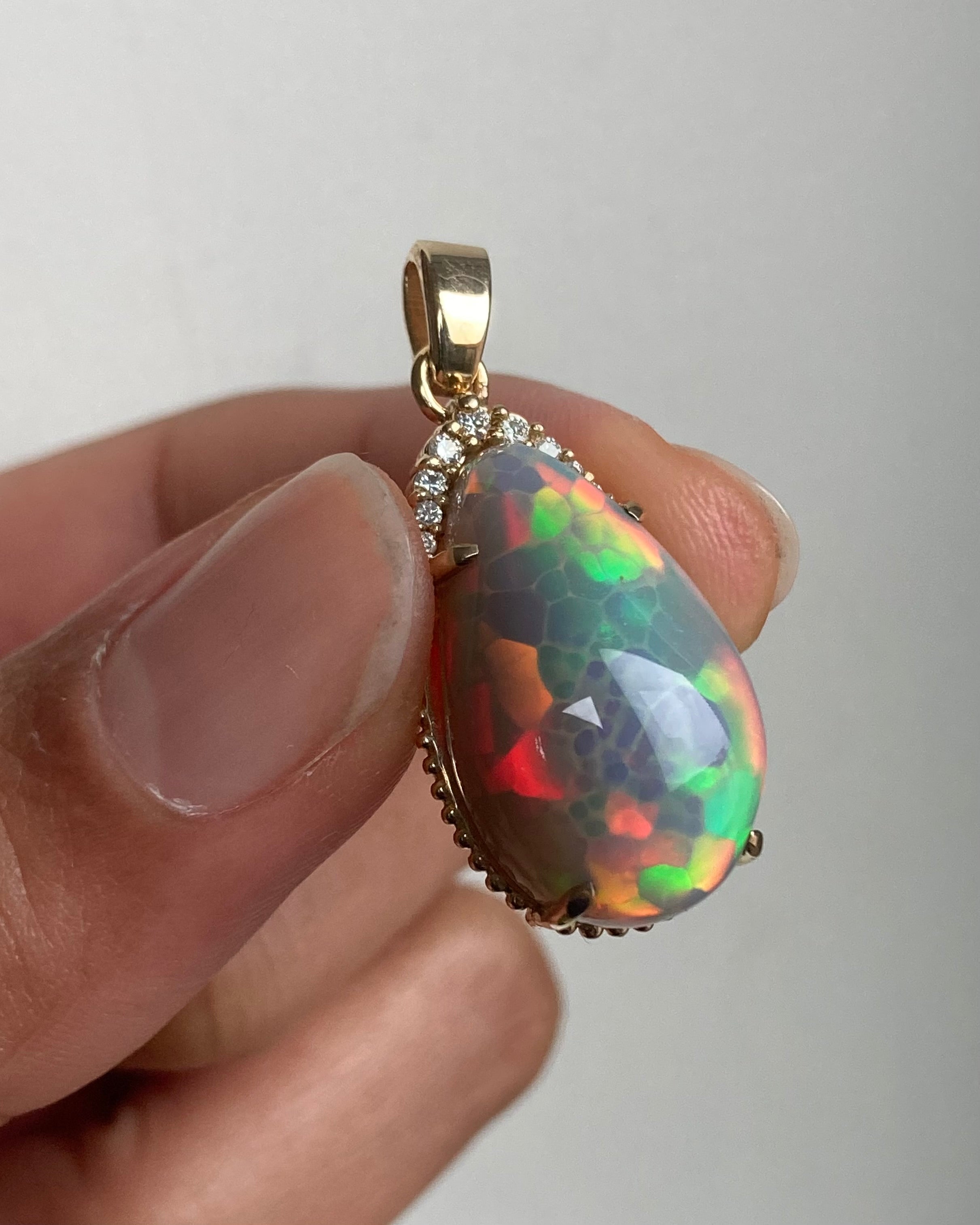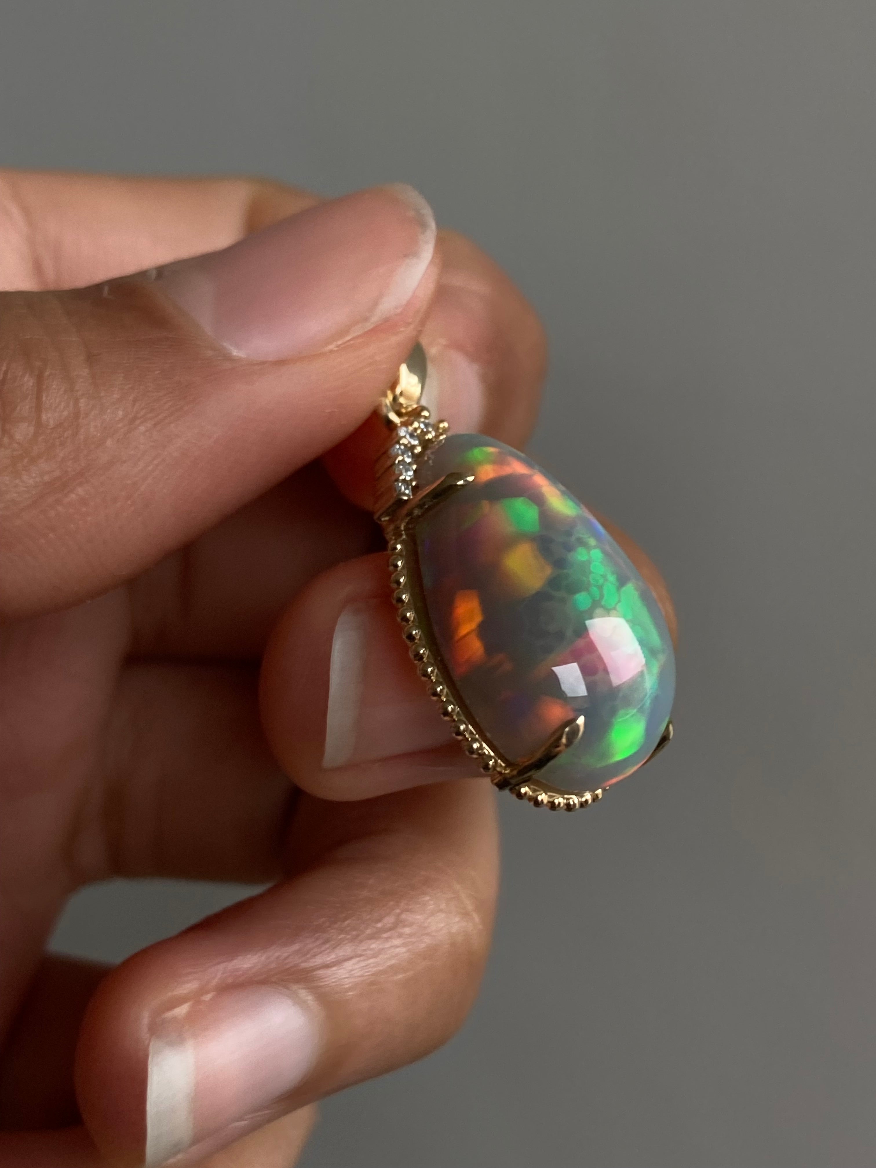 14k Ethiopian Honeycomb Opal and Diamond Pendant
